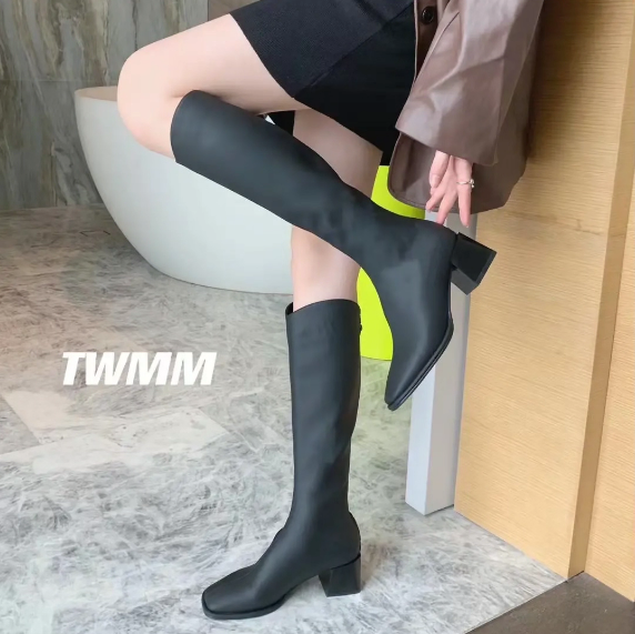 秀气方跟软皮长筒女靴