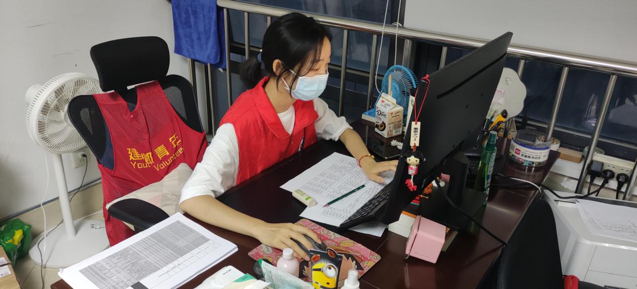 7月25日16:00-23:50,中建三局一公司华东公司南京公司机关志愿者协助国际博览中心、沙洲街道社区对采集点的人员核酸检测进行引导、数据整理等工作。