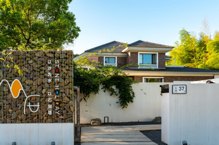 “以沙为水,以石围塘”,这是石塘37号的设计理念,民宿设计建造中大量使用了石头、砂砾元素,就连入户门也设计的高矮不一、别具一格,一面石墙、一面白墙,即是对江南水乡建筑元素的尊重,又融入了家乡石塘坝水库的风情,以石塘为名也源自民宿主人对石塘村的热爱。