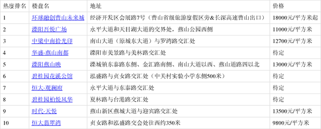 除上述5个楼盘外,碧桂园花溪公馆、恒大·观澜府、碧桂园柏悦风华、时代·天悦、恒大翡翠湾分别位列榜单6-10名。