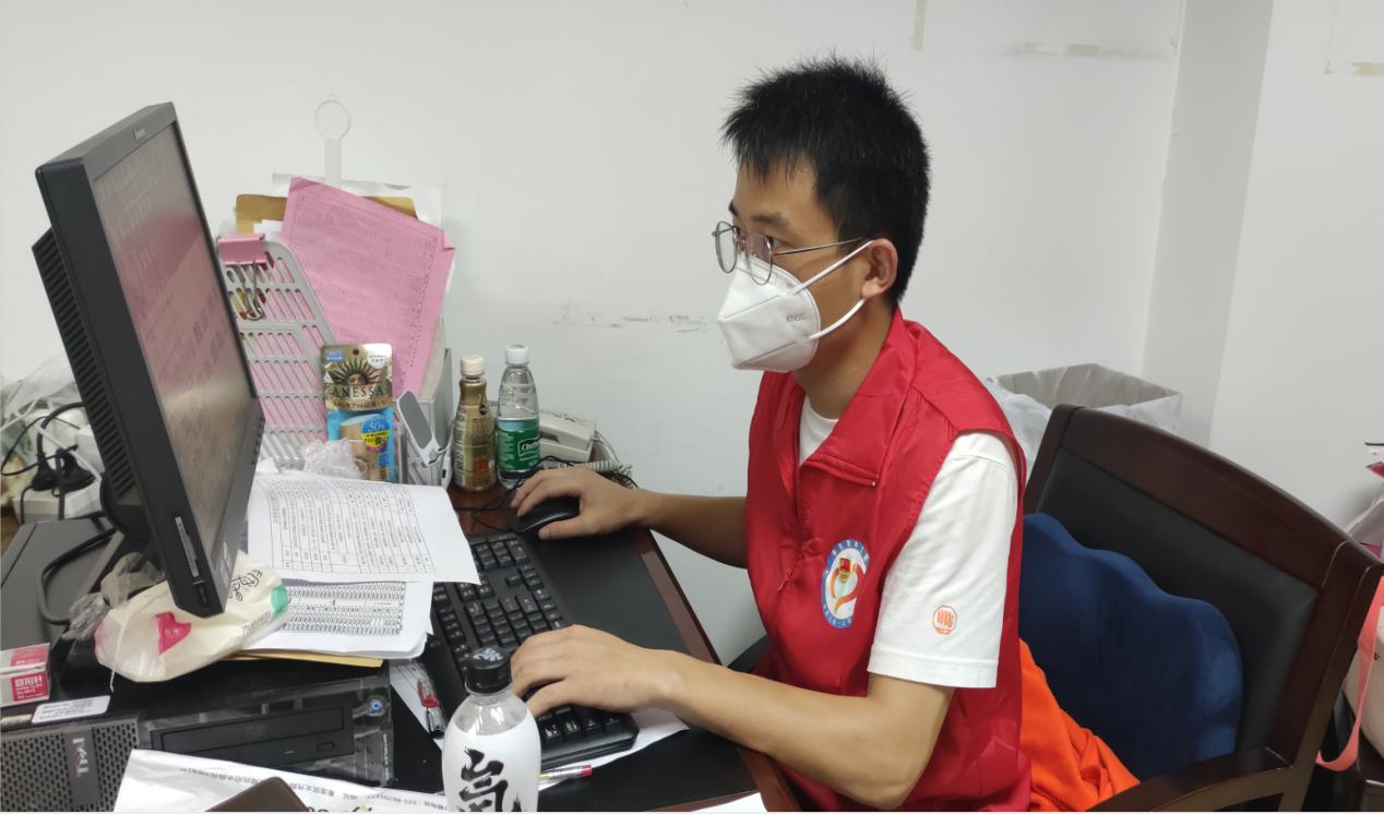 7月25日16:00-23:50,中建三局一公司华东公司南京公司机关志愿者协助国际博览中心、沙洲街道社区对采集点的人员核酸检测进行引导、数据整理等工作。