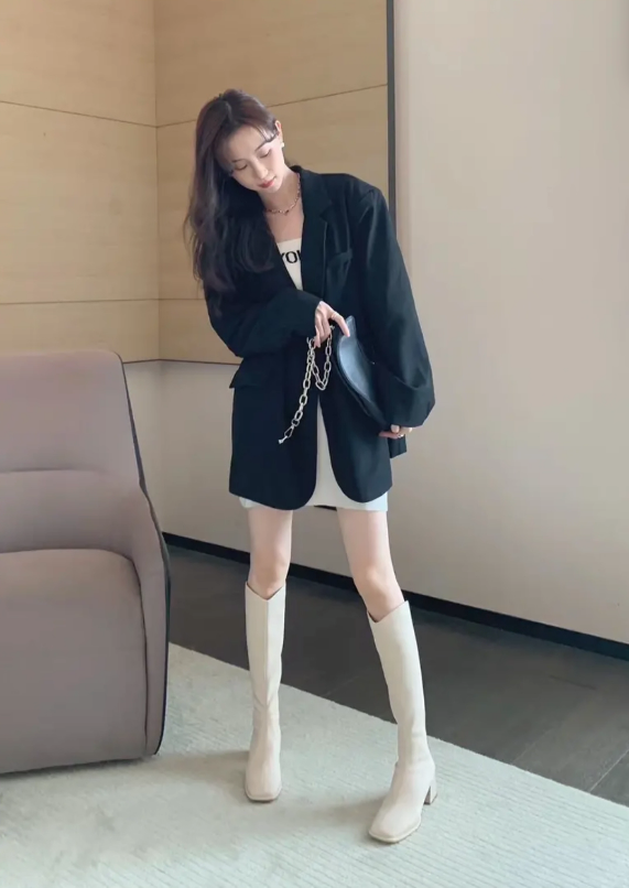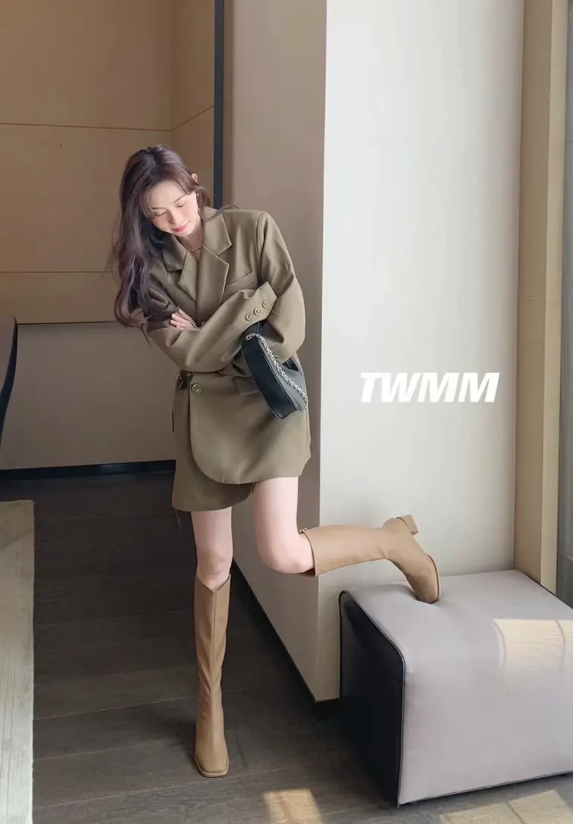 秀气方跟软皮长筒女靴