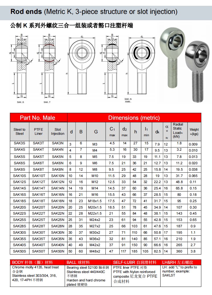 卡瑞森注塑鱼眼轴承XFM公制内螺纹SIK6 8 10 12 14 16 18 20 22T