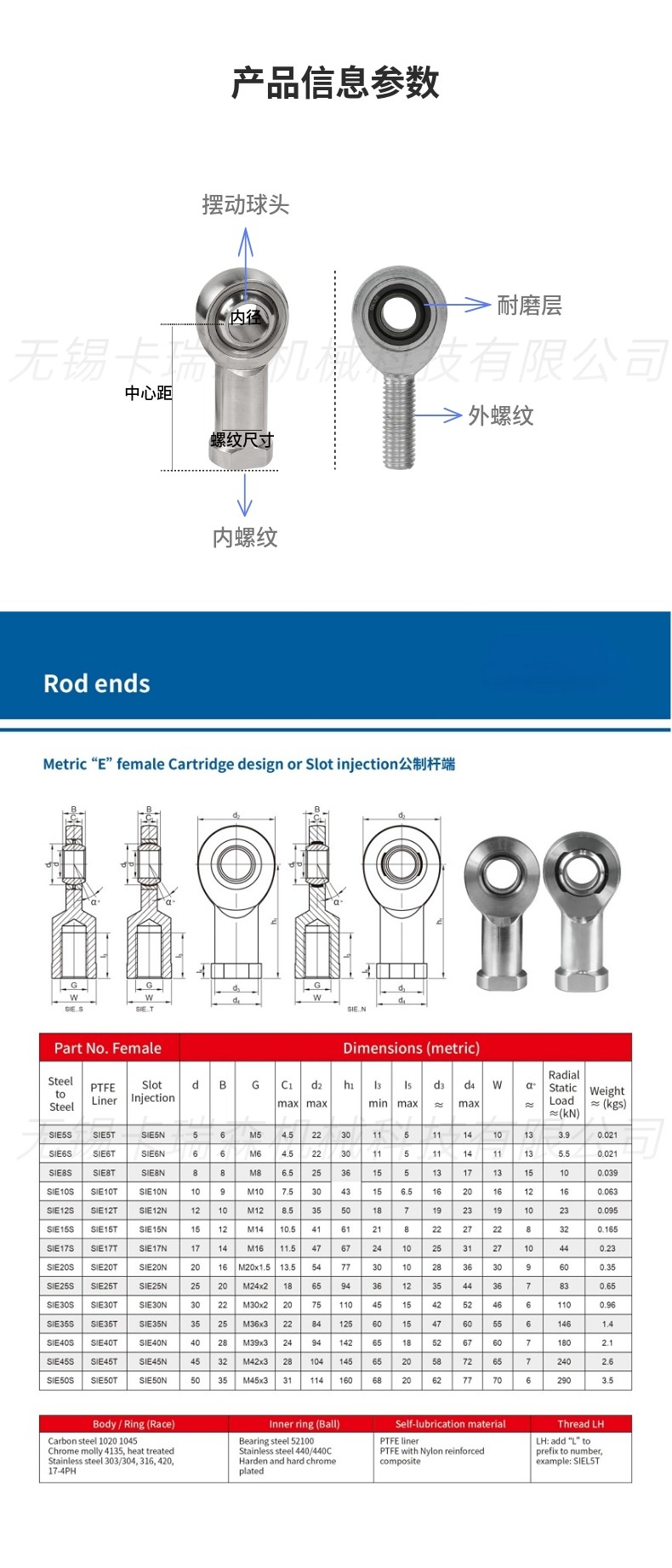 卡瑞森赛车改装球头杆端关节外螺纹免维护自润滑轴承公英制现货