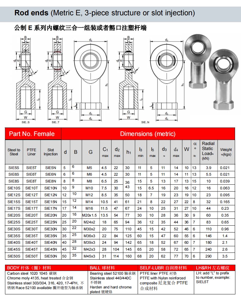 卡瑞森三合一鱼眼轴承PXFM内螺纹SIK6 8 10 12 14 16 18 20 22T