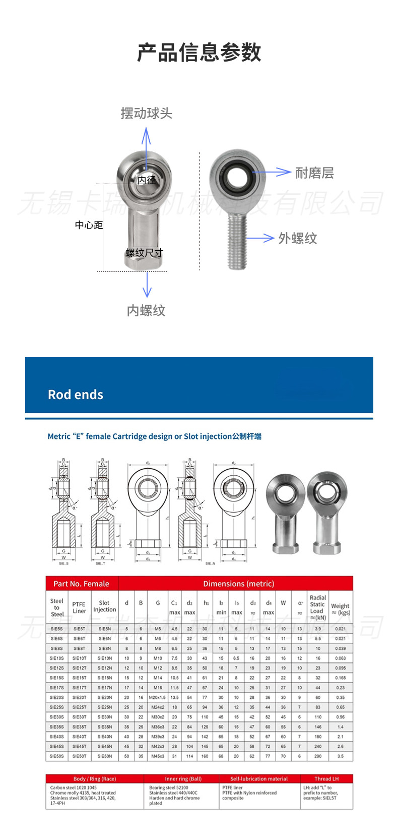 卡瑞森赛车改装球头杆端关节外螺纹免维护自润滑轴承公英制现货