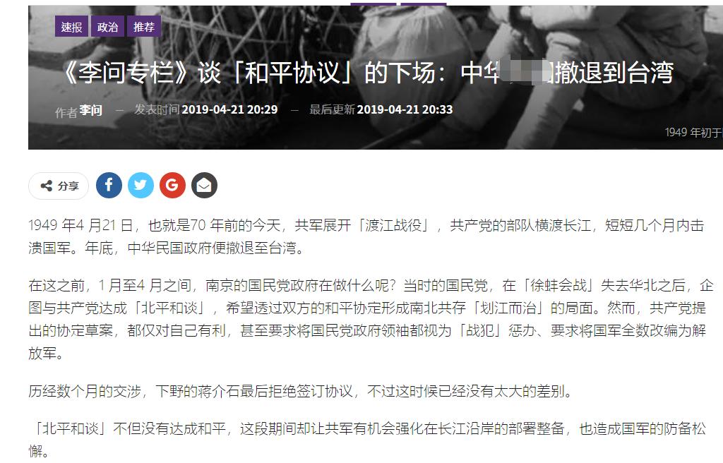 上图这篇报道就是本次纠纷的起源,该文采访了李问及另一位黄姓记者,从二人的回应分析了台军目前的问题。文中称,从台军装甲部队退役的李问结合自身经历,批评台军“没有战术培训和军事演习”,有严重的备战问题,措辞中对台军实力颇为悲观。