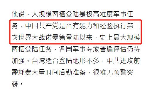 截至目前,多家台媒纷纷转发了李问的回应内容,台湾“中央社”等媒体还专门抽出了李问那句“诺曼底后史上最大规模登陆”,给对台登陆套上了一个“全球第一”的说法。