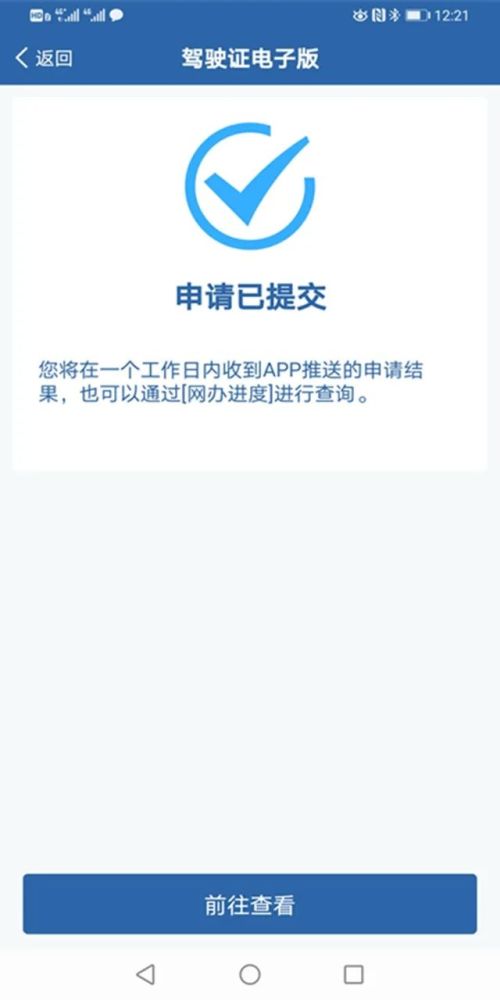 (三)使用相册的证件照片申领。对信息系统无符合要求留存照片的,除拍照方式提交电子照片外,还可以在手机相册中选择证件照片,用于申领电子驾驶证。提交证件照片后,公安机关交通管理部门将在1个工作日内进行审核,对符合要求的,“交管12123”APP将生成电子驾驶证,并推送申请成功信息。