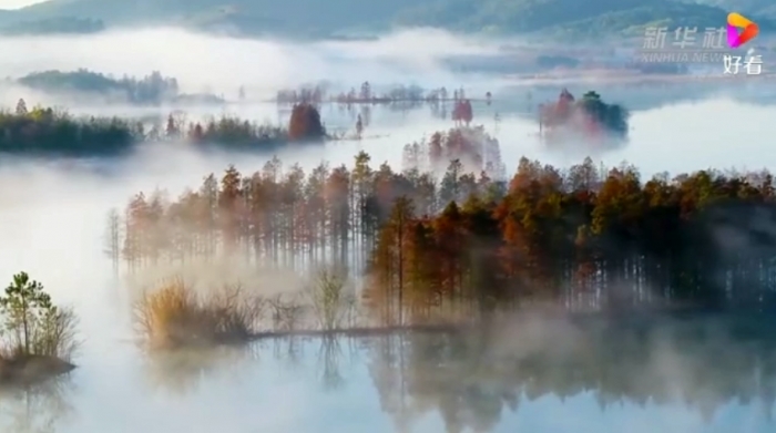江苏溧阳:“醉美”晨雾天目湖